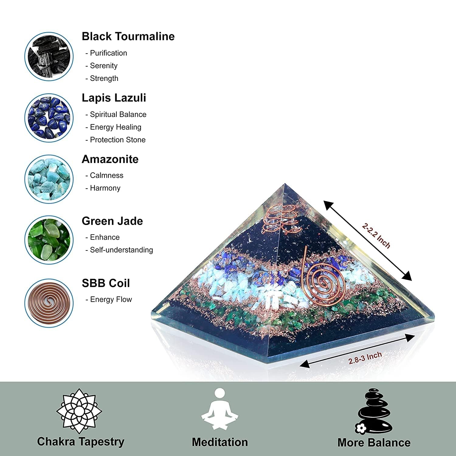 Black Tourmaline Lapis Amazonite Green Jade Orgonite Pyramid