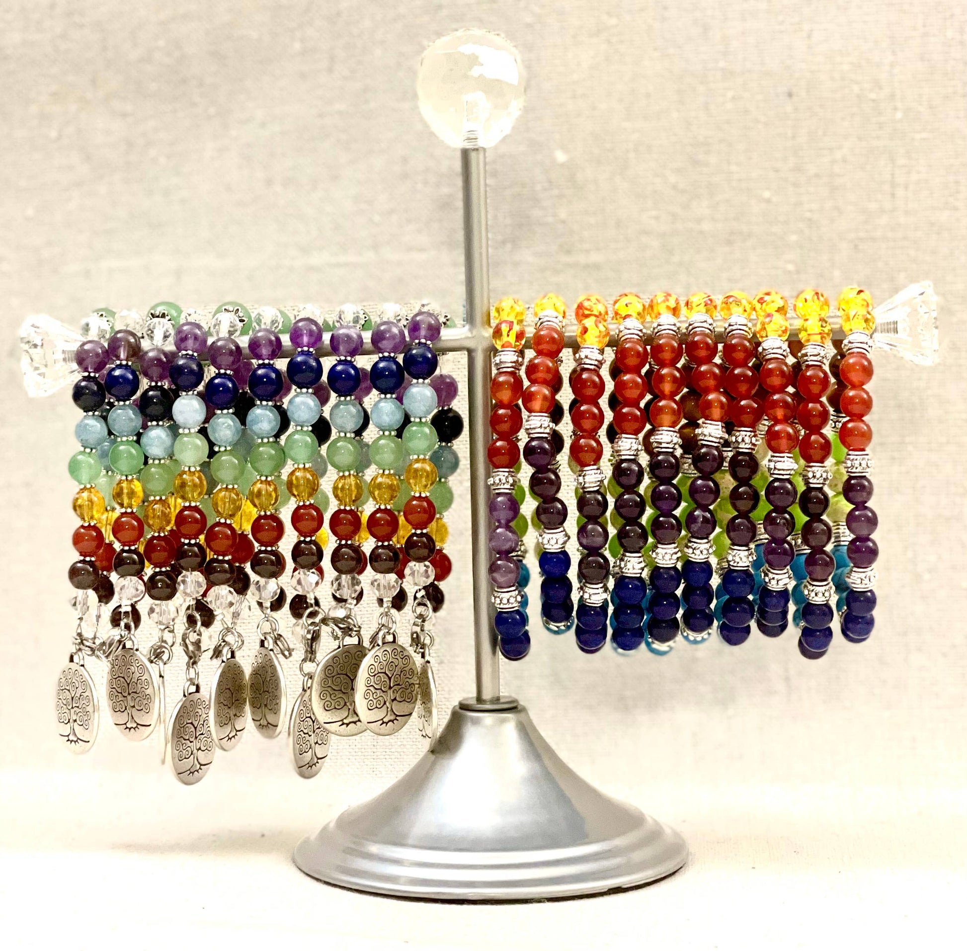 Chakra Gemstone Silver Finding Bracelets with Free Display