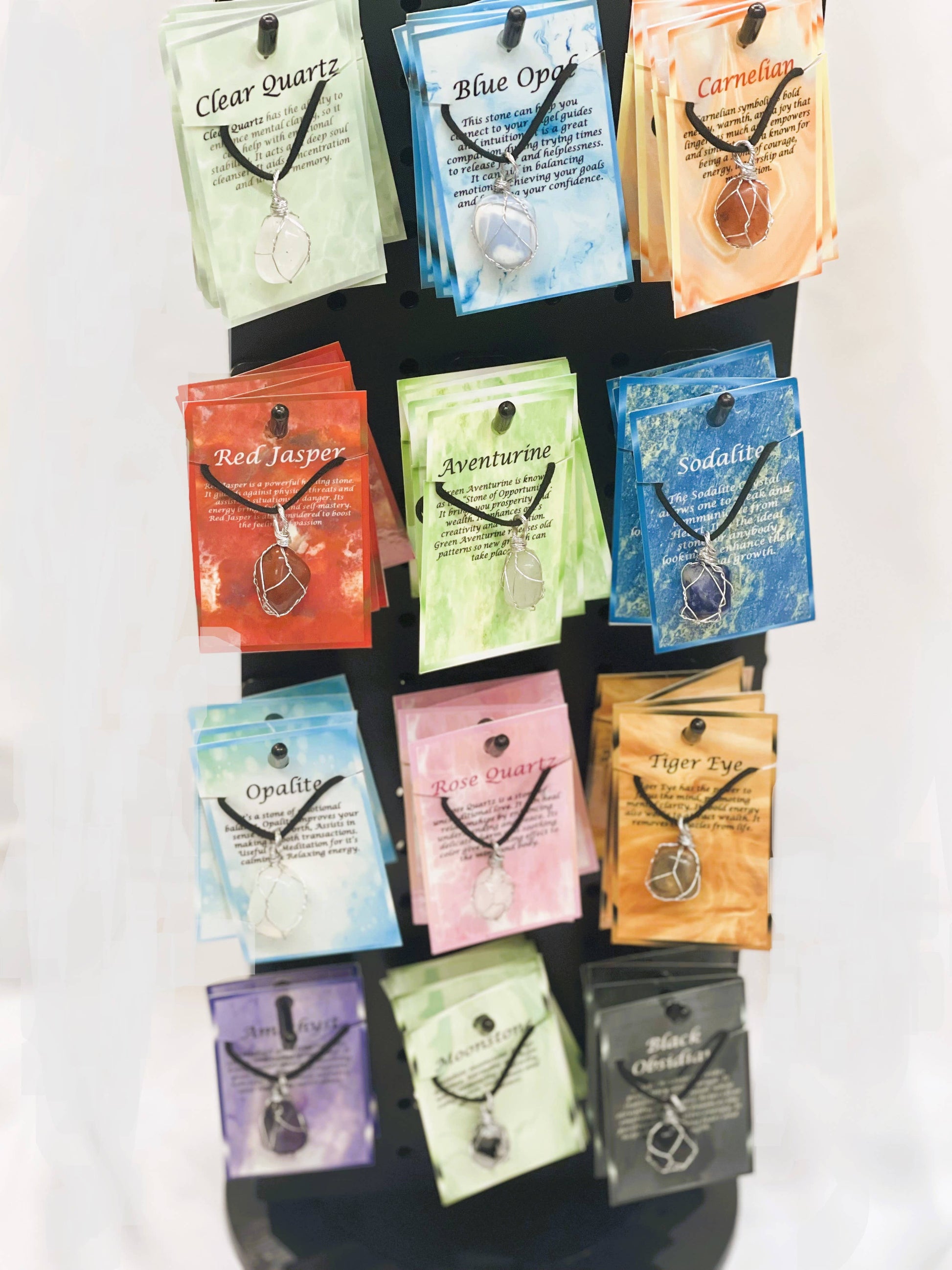 Natural Gemstone Wire Wrapped Necklace with Free Display