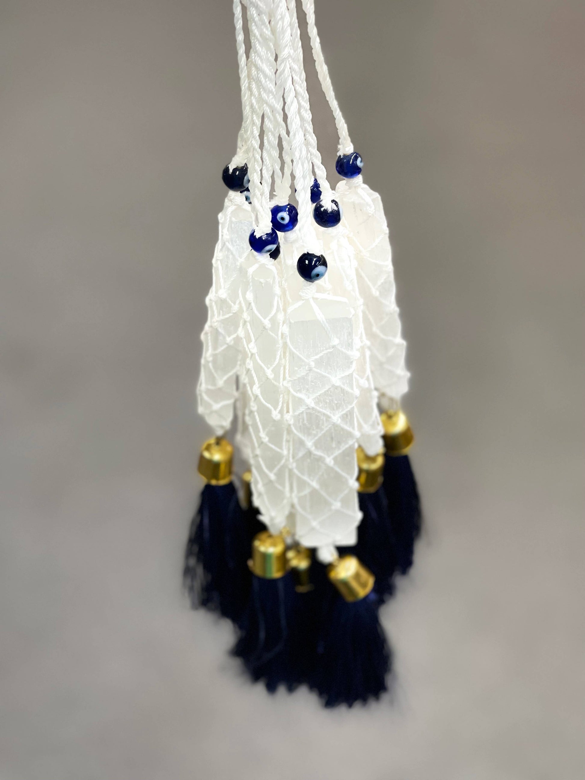 Selenite White Thread Evil Eye Sun Catcher Blue Tassel